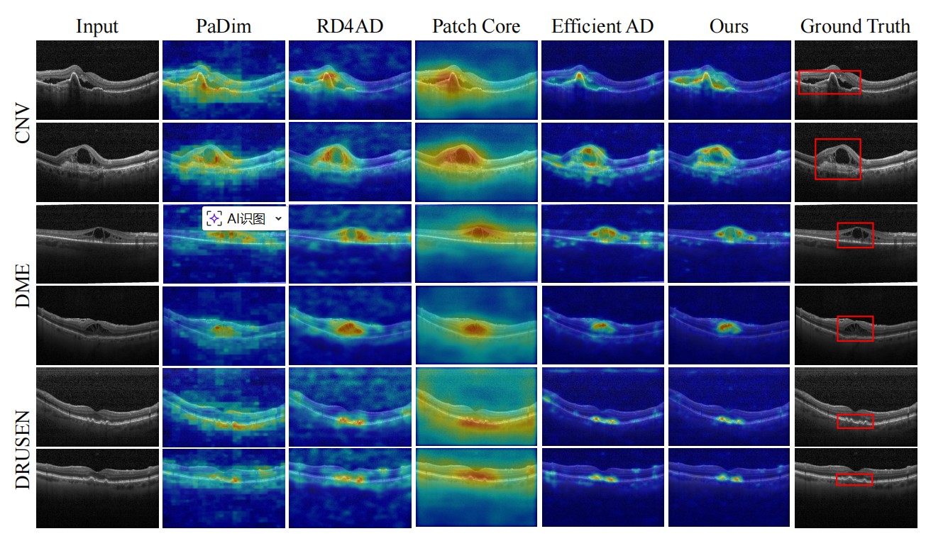 该研究为视网膜 OCT 图像的无监督异常检测提供了一种兼顾局部结构与全局语义的新思路,也为复杂医学影像中多类型异常的统一建模与分析提供了有价值的技术参考。